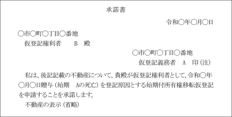 仮登記は、仮登記の登記義務者の承諾があるときは、当該仮登記の登記権利者が単独で申請することができます。この場合には、仮登記の登記義務者の承諾を証する当該登記義務者が作成した情報を提供しなければなりません。